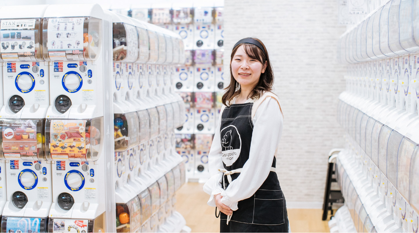 もともとサンリオなどのキャラクターや、カプセルトイが大好きで、好きなのに囲まれて仕事ができる環境に魅力を感じ、入社を決めました。思い描いていた通り、最新のキャラクターに囲まれ、自身の好きなものを通じてお客様に「元気と笑顔」を届けることができ、毎日が楽しく、充実した日々を過ごしています。